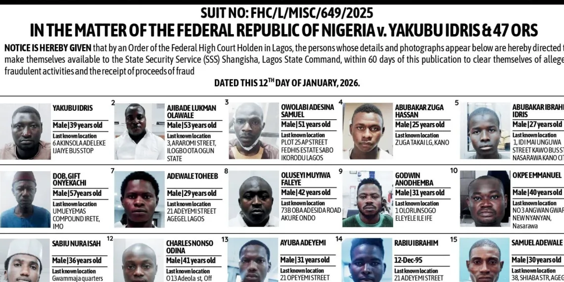 The listed individuals have exactly 60 days from the date of the public notice to make themselves available to the authorities. The purpose of this visit is for them to clear their names regarding the fraud allegations. The court warned that this is a formal legal requirement under Suit No: FHC/L/MISC/649/2025.