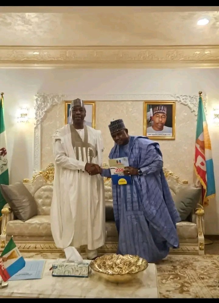 The endorsement followed a moment captured in a photograph shared by the governor’s aide, showing Gubio presenting his expression of interest and nomination forms to Zulum.