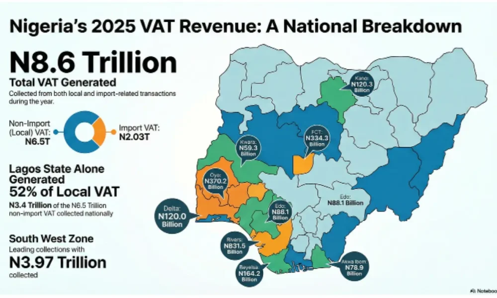The Nigeria Revenue Service (NRS) collected N3.4trn from the total N6.5trn it collected as Non-import Value Added Tax (TAX) in 2025 from Lagos State, analysis of...